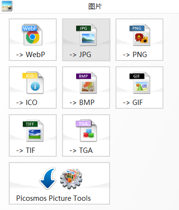 支持转换到各种常用格式:WebP, JPG, PNG, ICO, BMP, GIF, TIF, TGA